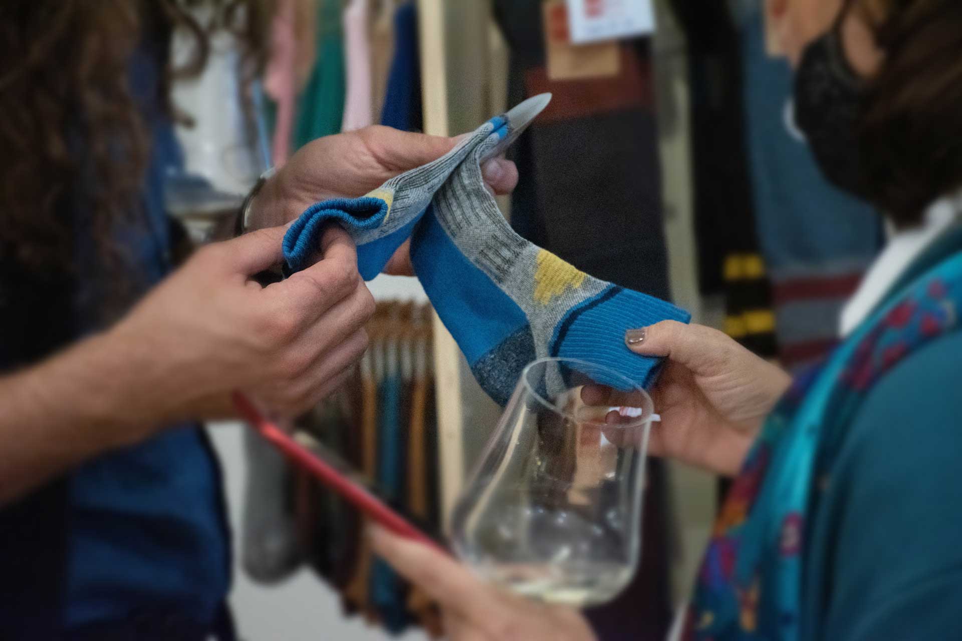 Trame Ritrovate è un progetto di recupero creativo di calze in lana, cotone, lino, fibre naturali… prodotte da piccoli calzifici e uscite dalla lavorazione spaiate, danneggiate, forate, difettate, sfilacciate, insomma imperfette… e apparentemente inutilizzabili.