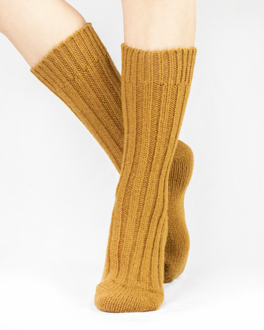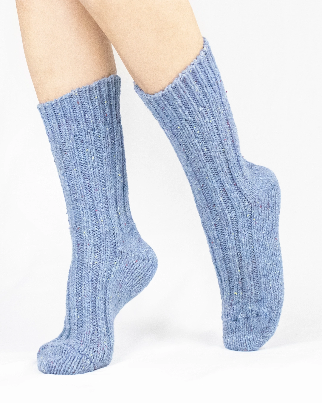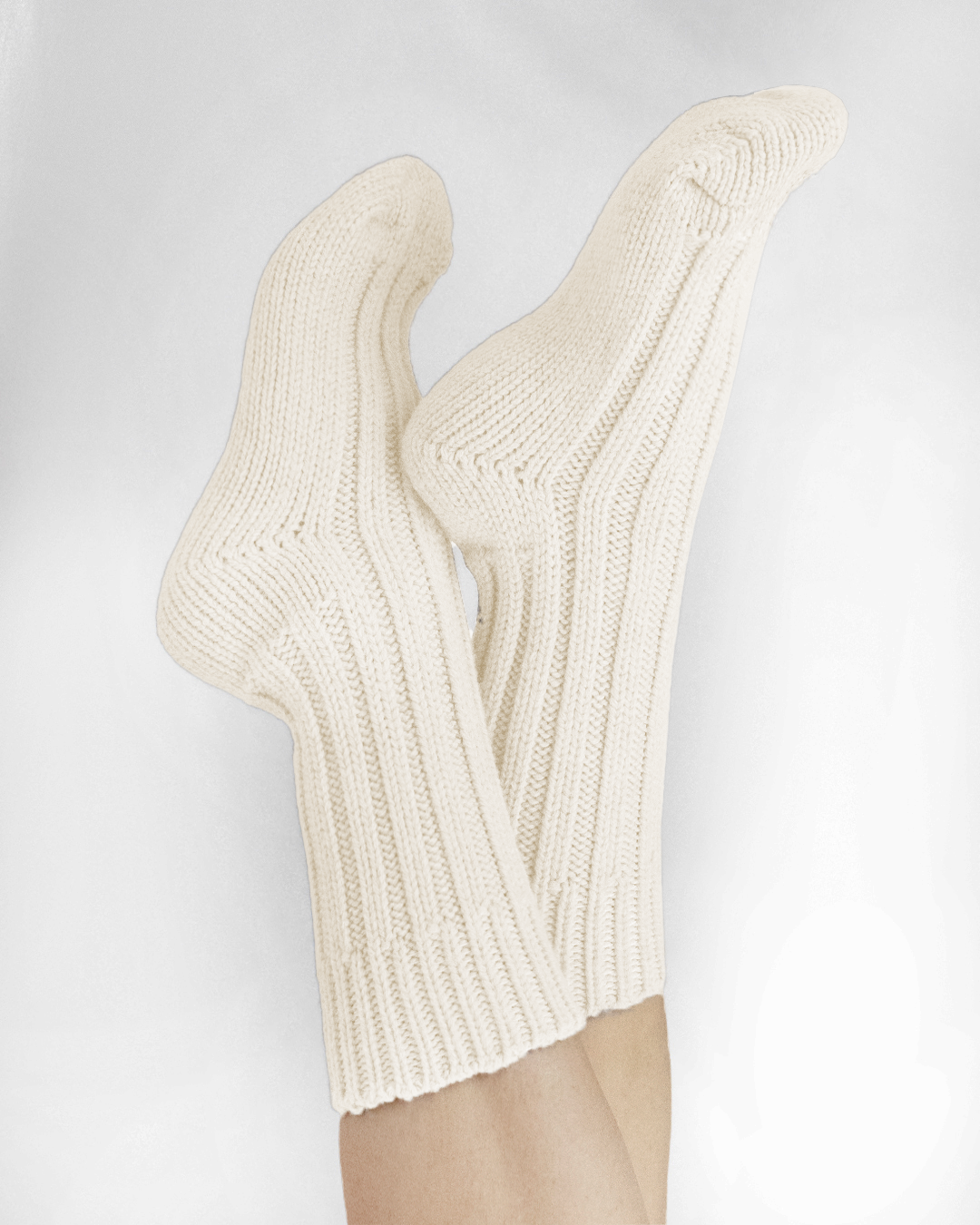 Le calze Minerva sono 100% lana. Calde e comodissime, non stringono il polpaccio perché non contengono elastici. Ideali per chi ha la pelle sensibile e non tollera l’elastomero.