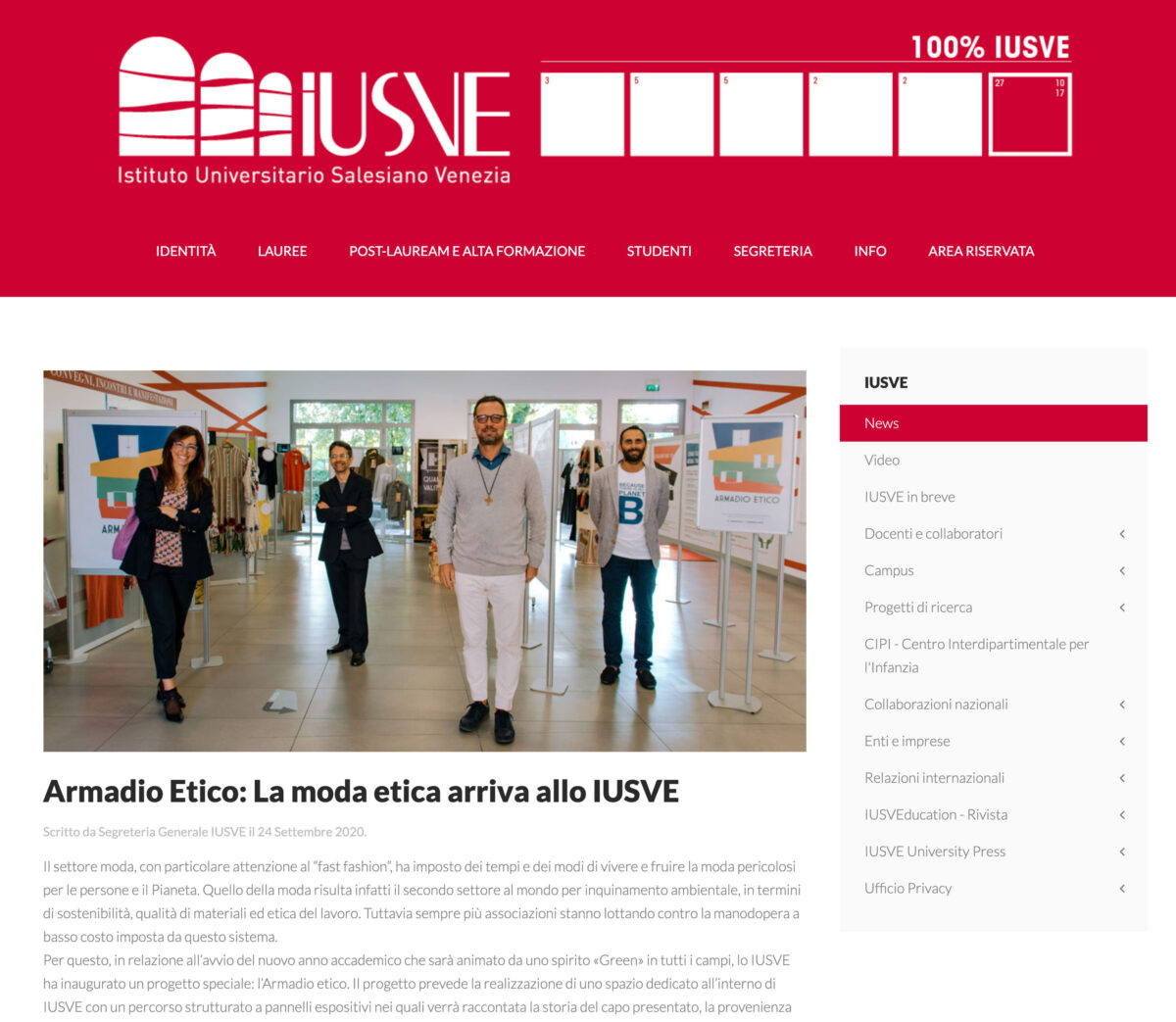 Settembre 2020, Trame Naturali partecipa al progetto Armadio Etico organizzato con Francesca Bonotto e lo IUSVE VENEZIA